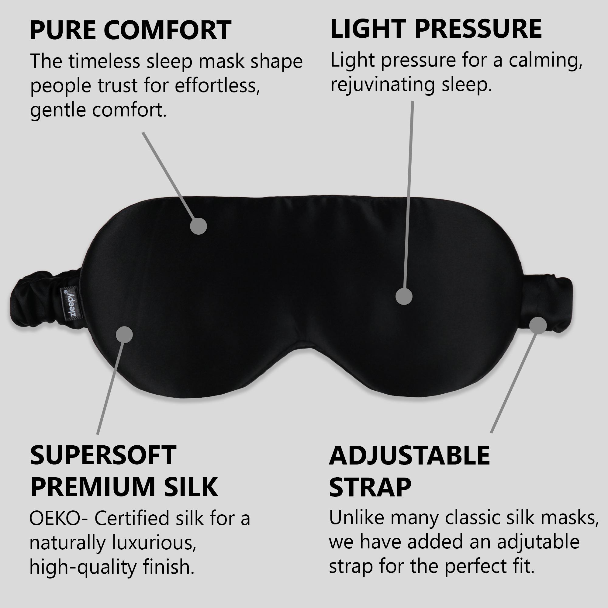 Premium supersoft silk that sits comfortably across your eyes with a light pressure fit that helps you drift off with ease.